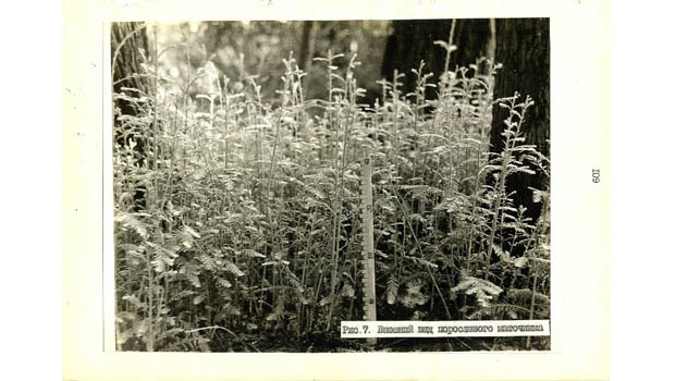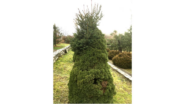 Рис. 8. На фото изображен клоновый саженец от культивара «сорта» ели возрастом более 15 лет, побеги которого сохранили все признаки ювенильного типа охвоения, то есть проявили неотению. В норме такой тип ювенильного охвоения исчезает после 2 лет у сеянцев.