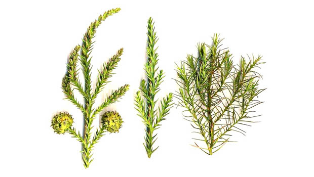 Рис. 11. Слева обычные побеги криптомерии японской; справа побег от ювенильной формы, который способен закладывать репродуктивные женские стробилы, но не обладает мужской фертильностью, семена бесплодны. Черенки от ювенильных форм обладают высокой степенью регенерации (укореняемостью).