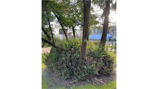 Рис. 2. На фото показано отрастание огромного количества ювенильных побегов порослевого типа, образующихся из спящих почек в основании ствола хвойного дерева секвойя вечнозелёная. Отмечено, что такие спящие тотипотентные почки неограниченно могут закладываться-переоткладываться (мультиплицироваться) в зоне этиоляции побегов (см. рис. 3). Такое мультиплицирование может быть бесконечным, вплоть до многих тысяч лет. Это подтверждает, что клоновое воспроизводство имеет безлимитный потенциал, и что у растений нет внутренней клеточной программы на сенесцент, который однако имеется у животных.