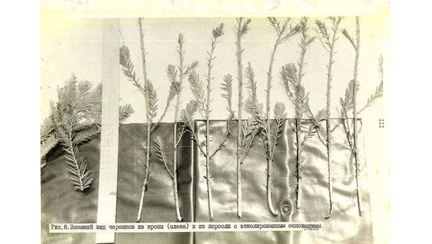 Рис. 3. На фото представлены ювенильные побеги от порослевого ювенильного маточника секвойи.